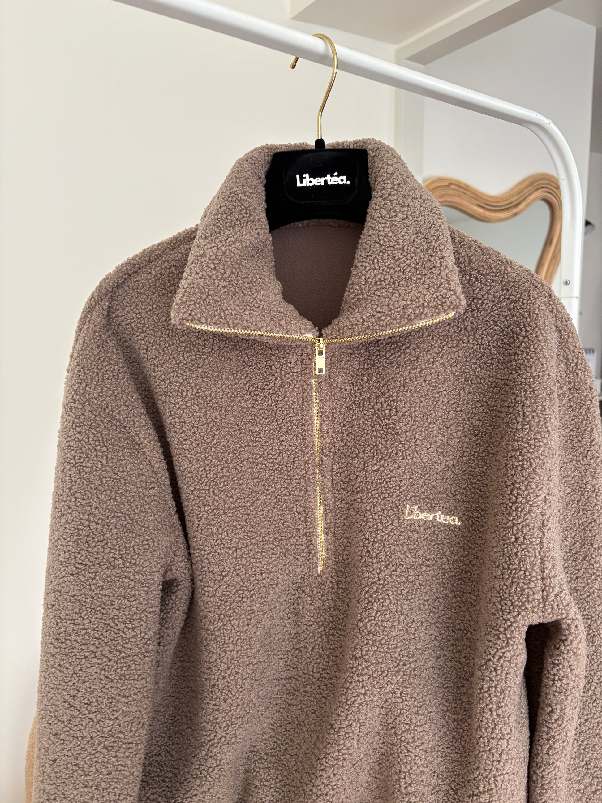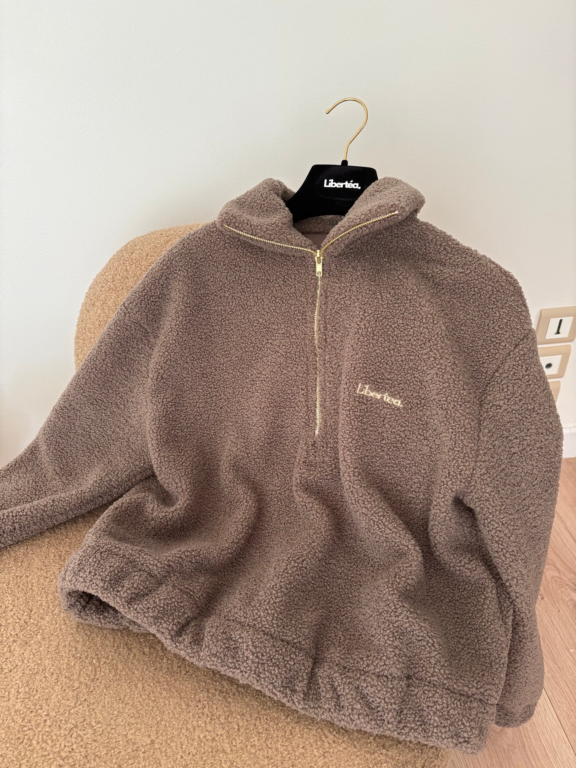Eden enveloppe vos journées d’une douceur infinie. Son extérieur en bouclette taupe rappelle la chaleur d’un pull d’hiver réconfortant, tandis que son intérieur en polaire toute douce vous offre un cocon irrésistible. Élégant et minimaliste, il se porte comme une seconde peau, entre confort et raffinement discret.